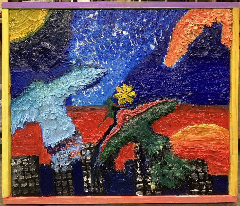 中学生生徒さんが描いた油絵です。