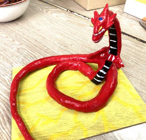 中学生生徒さんがつくったみつ首の龍です! うろこや背ビレ…